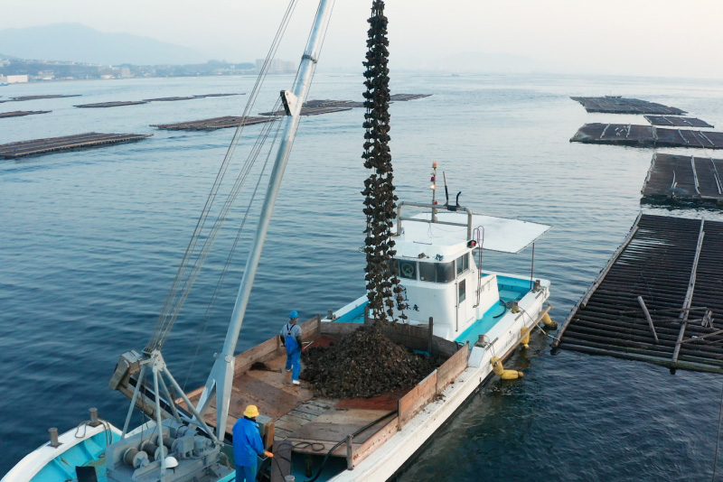大野地域には約30の生産者がかきを養殖しています。一つの道沿い約10kmの間にこれだけの生産者が集まっているのは全国でもここだけです。ぜひお気に入りのかきを見つけてください。